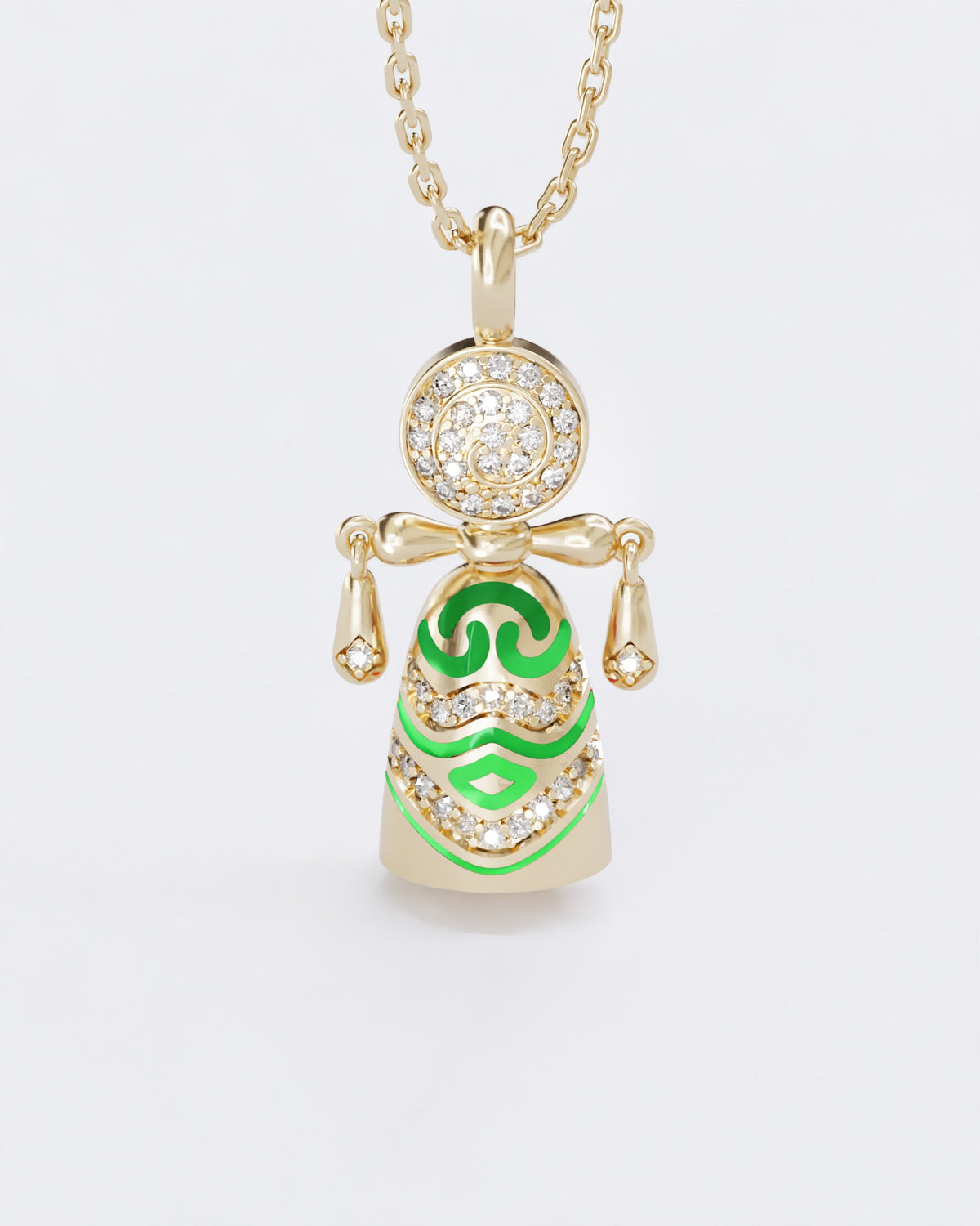 The Colors of roots Motanka Doll pendant is a profound tribute to heritage, symbolizing the strength, wisdom, and enduring bond passed down through generations. Thoughtfully crafted from 14K gold (585) and adorned with diamonds and high-durable jewelry enamel, this piece celebrates the timeless connection to family and ancestry.