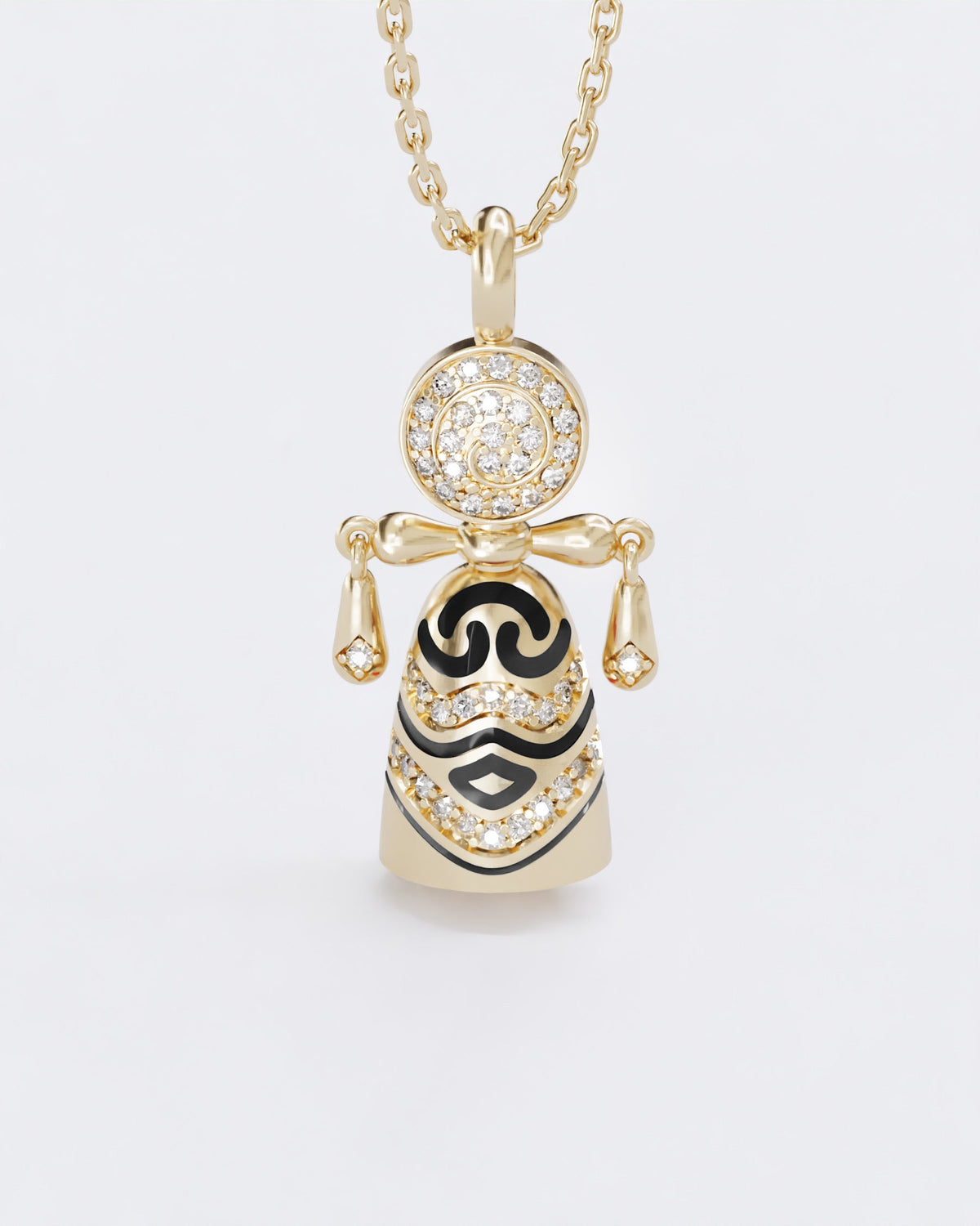 The Colors of roots Motanka Doll pendant is a profound tribute to heritage, symbolizing the strength, wisdom, and enduring bond passed down through generations. Thoughtfully crafted from 14K gold (585) and adorned with diamonds and high-durable jewelry enamel, this piece celebrates the timeless connection to family and ancestry.